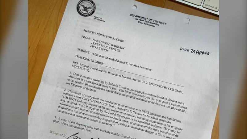 В графе возвращающий значился адрес логистического центра Центрального командования ВМС США в Бахрейне. Согласно письму, таможня Бахрейна нашла в посылке «порнографические материалы или устройства», которые запрещены в королевстве. В тексте писем утверждается, что игрушку нашли во время досмотра на рентгеновском аппарате, однако очевидно, что сотрудники вскрыли коробку и тщательно досмотрели, зачем — остаётся только догадываться. Пентагон отдельно потребовал от bonjibon не отправлять посылки на Ближний Восток.